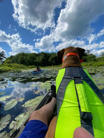 Large beach area with large inflatable water toys. Crystal Lake Boat Ramp is a boat launch on Crystal Lake and Crystal Lake Brook in Appalachian Mountains NH.